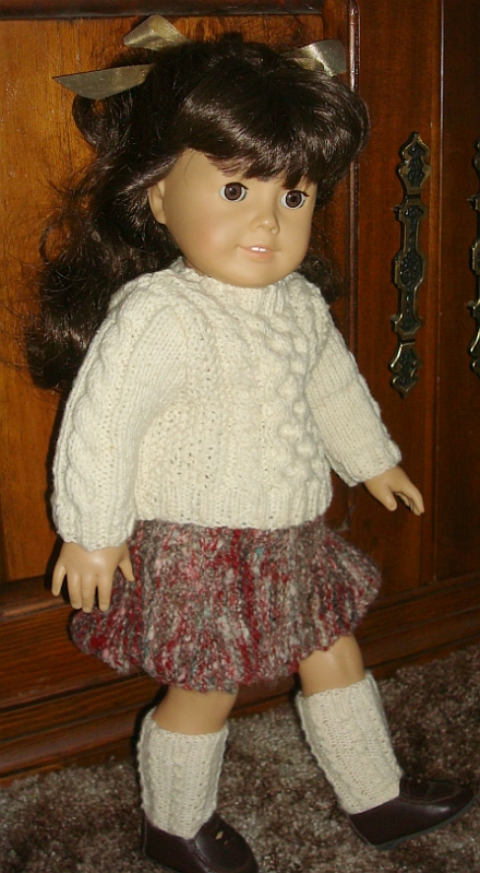 And to save some wear and tear on Samantha’s bountiful hair the sweater buttons up the back. I hope to get a pattern written up.