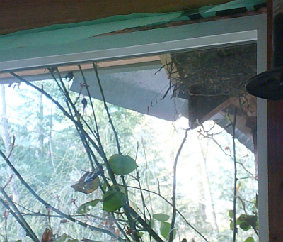 The Jays are back rebuilding the nest we had to remove temporarily when we changed the windows last summer. I wasn’t sure if they’d like the changes but they don’t seem to mind. Could not catch them in the act, they are working too hard and too quickly for my camera.