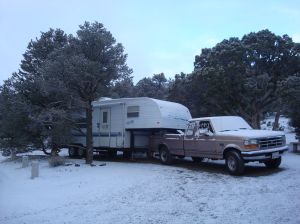 The start of our trip was rather white and cold. This was a morning in Nevada where we stayed in a state park. Nice place but the weather wasn’t the greatest! lol