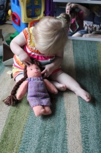 Hazel Rose is celebrating her first birthday! She and her parents live in Oregon and Hazel came by to visit with us at OFFF last October. We wanted to help celcbrate her 1st birthday so sent along this little doll woven on the looms, of course. She seems to like it so we are happy, too. Thanks Mom for sharing the pictires!