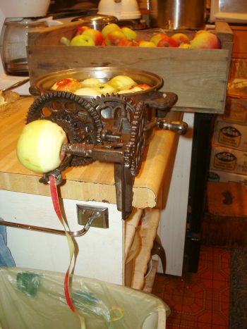 Randy went to work on Grandmother’s apple peeler and got it working again. It needed a little aligning and some sharpening. This old machine has peeled a lot of apples! It was given to Grandmother many years ago by a friend who told her it had been his mother’s. Grandmother passed it on to me a long time ago. I haven’t used it the last couple years as it was out of whack, but Handy Randy has it going again. I’ve put up two and a half dozen pints of apple sauce this week and am working on pies for the freezer today. Unfortunately my freezer is getting a little crowded! I’m not sure I’m going to be able to get as many in there as I’d like. My poor BIL may have to take one home with him after Thanksgiving! lol