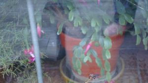 Granmother’s Christmas Cactus which is over 50 years old got eaten off summer ’09 by a deer that wandered into the yard where we thought it was safe. It was down to stubs. It has made a very nice comeback, in fact, it looks better than ever, and Randy discovered this morning that it is even blooming! All the flowers are on the window side so this photo was taken from the deck. This is the first time it’s bloomed since Grandmother died and we inherited it. Cool!