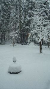 They’re buried again. It’s nearing a foot in the open areas. No plows so far and only one brave parent from up the road trying for the school. School won’t close unless the power fails as most kids are within walking distance. Which it just did but was only off minute. This new battery back-up worked just fine, saving this half done post. Thank you, Bernie!
