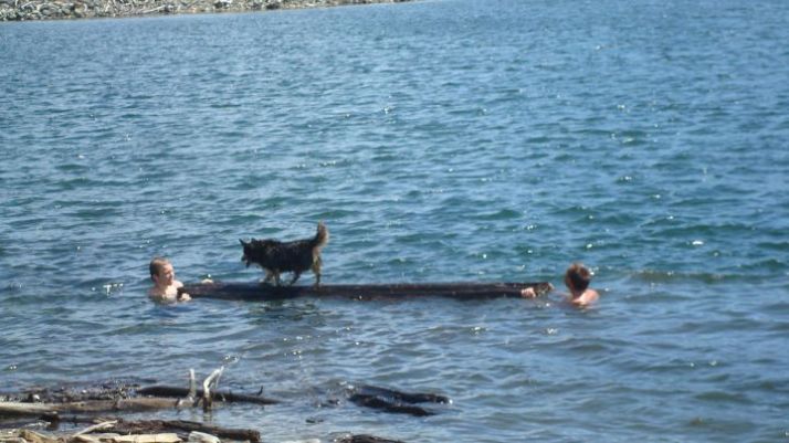 The grandsons worked hard today so I took them swimming. They even got Cori in and up on the log! I sat in the shade and read while they froliced. It was cool enough to be comfortable and I’m just not often attracted to swimming anymore.