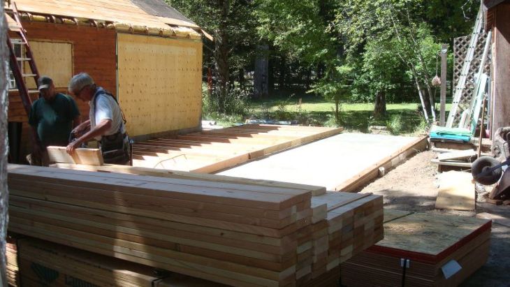 Meantime, the slab is poured and the forms pulled. The truck delivered the lumber this morning and Randy and his carpenter have already got most of the heavy double wall between the house and the shop built and it really standing now. They’re having lunch but I’ll bet this one and maybe more will be up by quitting time if it doesn’t get too hot. We should have most of a new space by the end of the week. X your fingers!