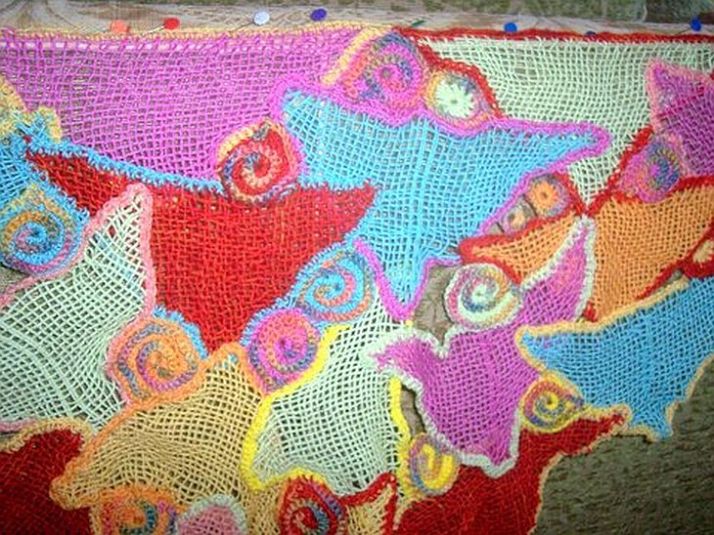 One of our weavers sent me these photo’s of a wrap she made, Valerie Dawson was inspired by Zann Carter’s Mangos for Breakfast. Both these woman are so creative! You may remember that Zann won in HandWoven Magazines sock yarn contest last year using our triangle loom. It’s good to see she’s still at it and still inspiring other artists! Thanks to Valerie for letting me post the photo’s of her wonderful wrap!