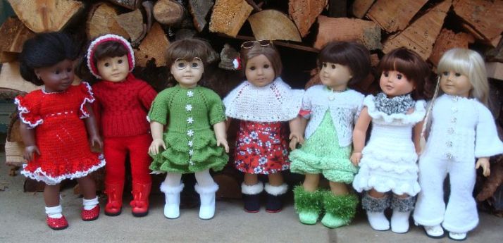 Addy, Samantha, Molly, Kanani. Lexi, Margaret, and Kirsten in her Julia wig.