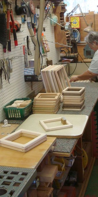 Jane Grogan will be teaching classes this summer using a 10″ square (see me sanding those looms) and also Quilting with Weaving using the Tiny Weaver set, both workshops at the Midwest Fiber and Folk Art Fair in June. She is a great teacher and talented weaver. If you are in the Wisconsin area do try to sign up for one of her classes. You won’t be sorry, tho if you wait much longer you may be too late!