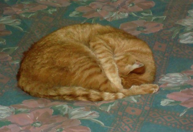 But Robin deals with it like this. He’s usually out napping on the deck, 80-90 degrees is comfortable for his old cat body.