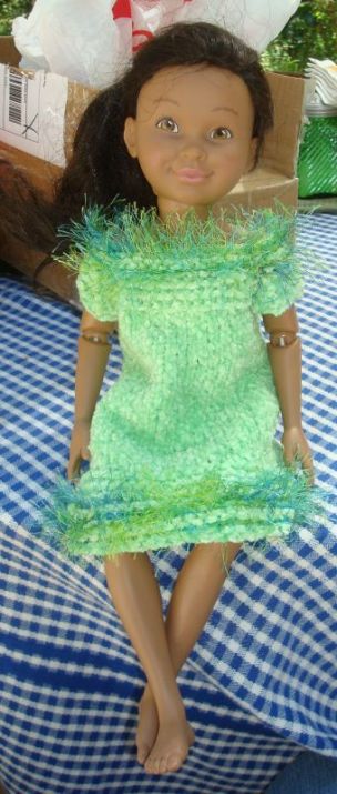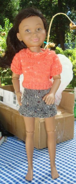 Speaking of dolls… I got a new one today. She’s an American Girl, too. An older one, no longer made by Pleasant Company. I knew she was coming in just her undies so i found some patterns from fellow dollers and had some waiting for her. Now that she’s here for me to fit I can start weaving her wardrobe, too! Meet Skyler! She’s having a bad hair day just out of the box but is in great shape elsewhere. She even stands up. her mini skirt is just a tad too mini but the sweater fits just fine.