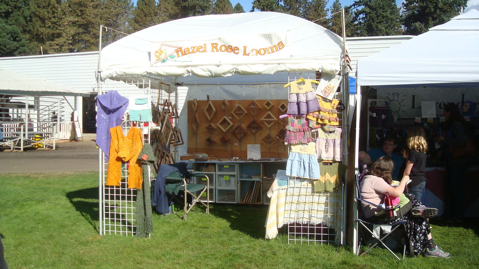 We had a great time at the Oregon Flock and Fiber Festival this year. The weather behaved and was just perfect, sunny and warm but not too hot. Lots of people came to enjoy the activities. We met and made new weavers and met a lot of weavers from years past. It was a very nice weekend.