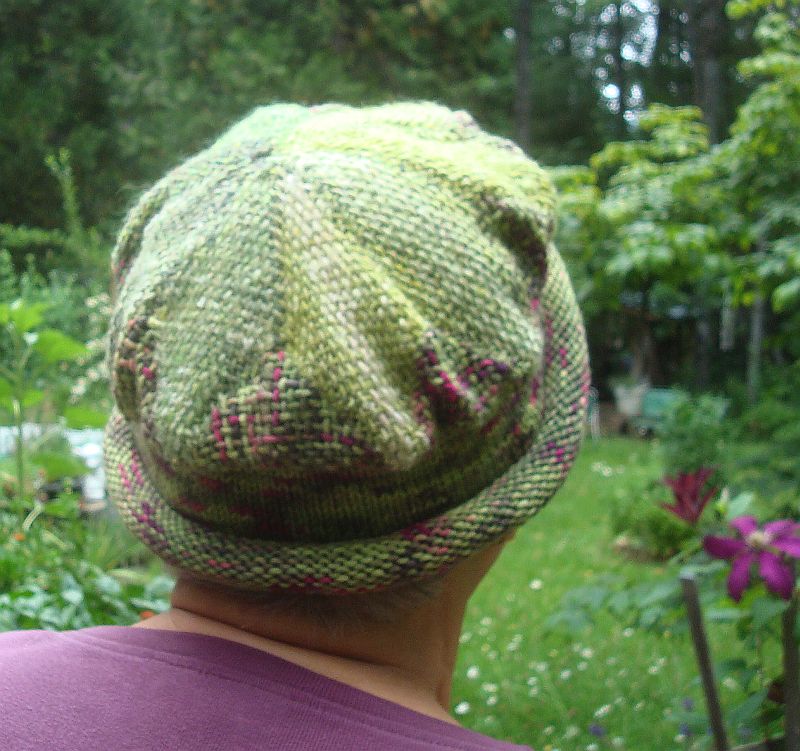 I also like her hat with the diamond top and the rolled brim. Hers was two dark colors so the diamonds stood out more than on mine where the colors kind of blend everything together. I’ll use more contrast on the next one. But I like it anyway.
