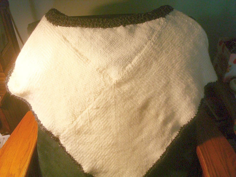 Added 8-3 Shrug is not working. Wanted to warn you here so you can rethink if you are following my examples. :-0 Not sure if it’s the plan or just my size. Plan rather simplistic, I agree. But it seemed like a good idea. Too short in back and too tight under the arms. tho the sleeves were plenty big. I could probably weave more squares and then cut and sew but I think I’ll just try something else this time. Stayed tuned!