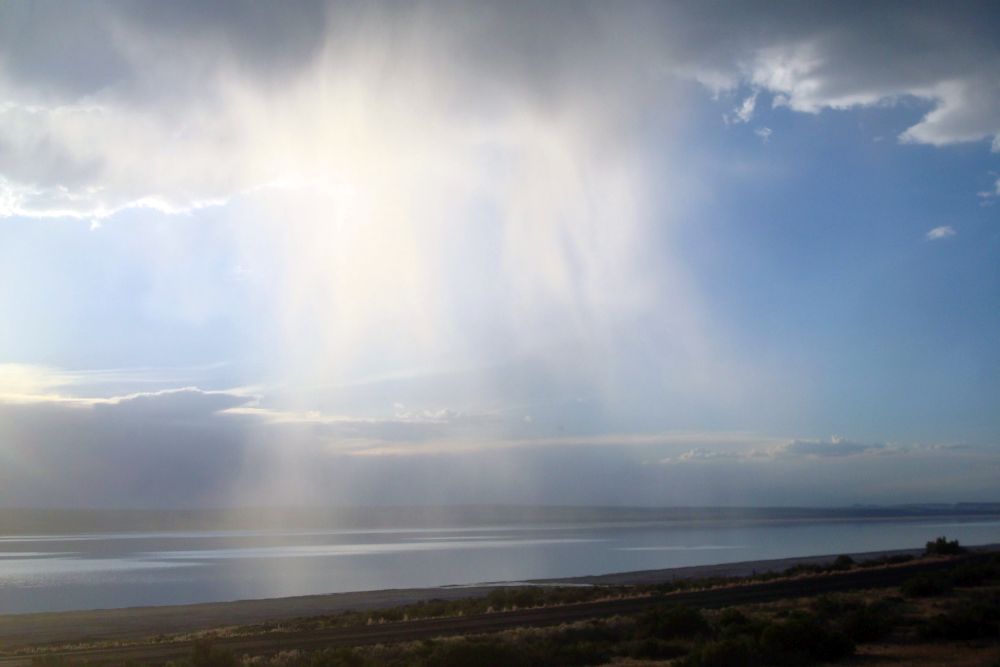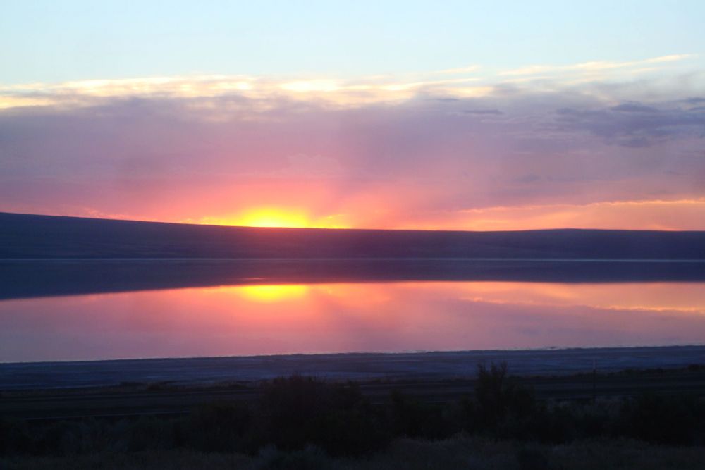 On our way up we stopped at an alkali lake in Eastern Oregon. A “rain” storm and a sunset.