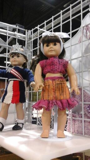I made a new doll dress with squares I wove demoing the looms here at the show, too. And met another Dolly weaver who bought my pattern book. Nanette has promised to share when she gets something made for her Granddaughter! Here’s mine.