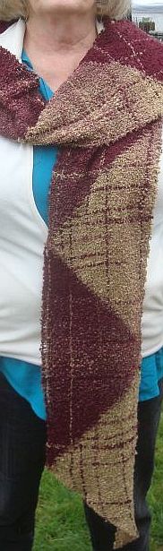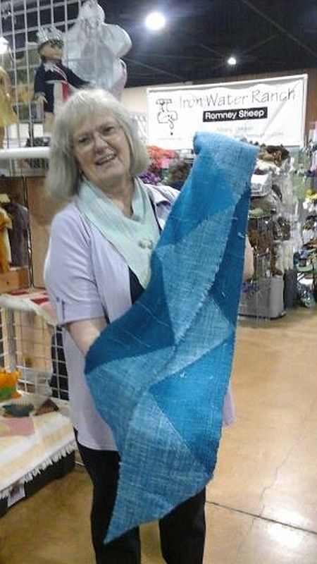We’re home again. Two weeks on the road is at least a week too much! lol We had a great time and met lots of people and made some new weavers and increased the stash for some others. Here’s one weaver who brought her project to BSG to share. Love that! Also the one from last year at OFFF. Pat Cane does some extra by weaving in strands of the opposite colors to blend her triangles very cleverly together. Isn’t it lovely?! I love seeing the projects you all weave!