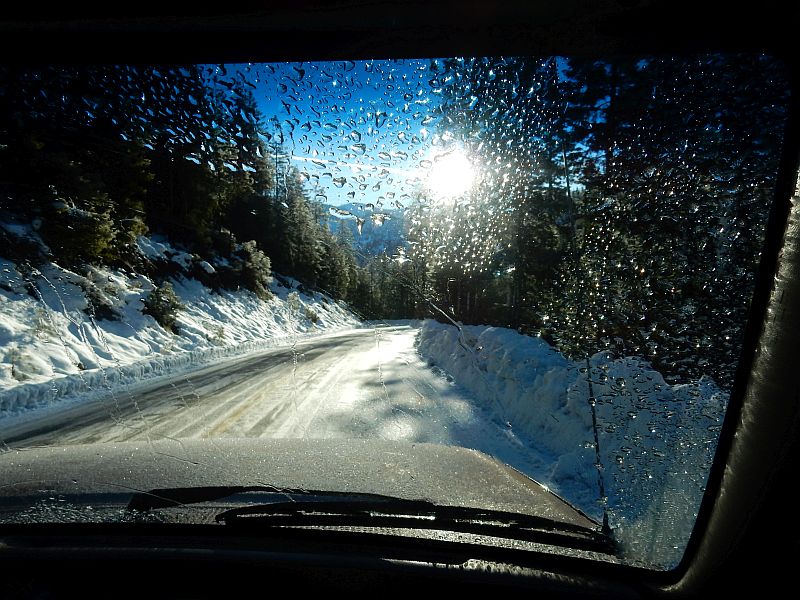 Trying to get to Medford for lumber and supplies, including groceries. Not making it! Well, we did eventually make it but not this time. Very slick ice over the mountain, we gave up and tiptoed back down 2 mph.