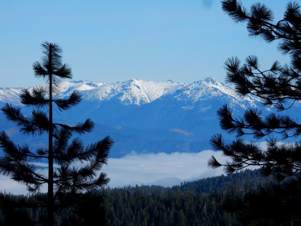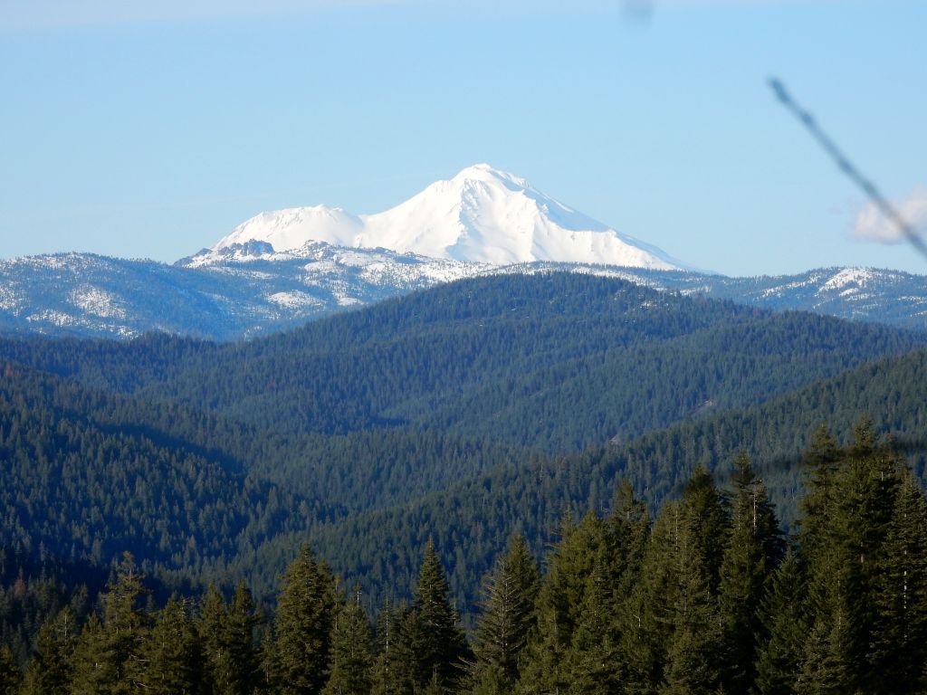 Looking east we can see that Mt Shasta has a nice white covering, too. Elevation for Billy Peak is 7275′, while Shasta is 14,180′ which will explain the difference in the depth of the white part.