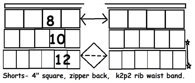 It’s finished. I’m writing all this up with pictures and will save as a pdf and post of the web site, probably. I’ll let you know. Madelyn is thinner so the shorts are a bit blousey on here but you an see that it would also make a nice skirt. I’ll try to find a live model for them.