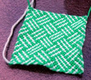 I am weaving, too, a couple projects I intend to offer to magazines so won’t show those yet. But I was doing some stuff with Log cabin that turned out pretty well. They’ll make nice coasters or, well, about anything else you might want to make!