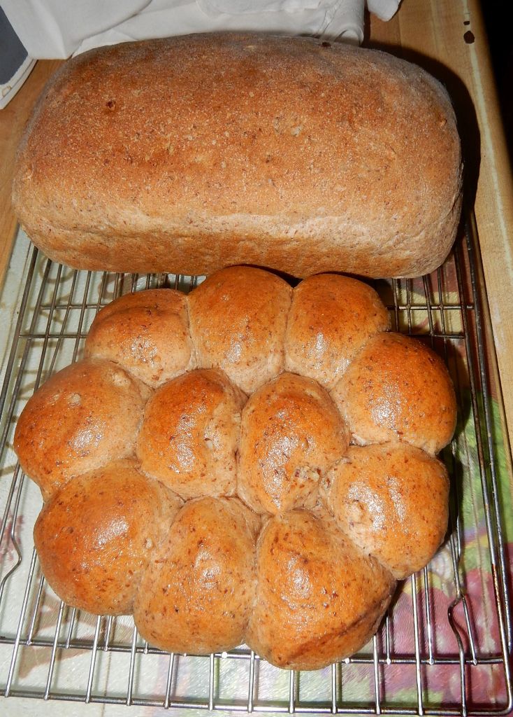 I use the dough cycle in the bread machine then do the rest ‘by hand’ and bake it in the oven in real loaf pans. This recipe makes a Big loaf or a smaller loaf and as few rolls.