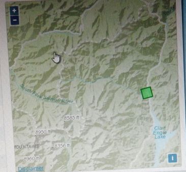 Coffee Creek is in the square, the little hand points to the area where the fire is edging down toward the Coffee Creek drainage and our way. Just now it’s about 14 road miles and moving, they tell us, slowly downhill.
