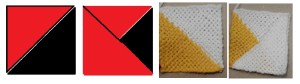 I have all the red squares and triangles finished. I need to work on the white squares and triangles.