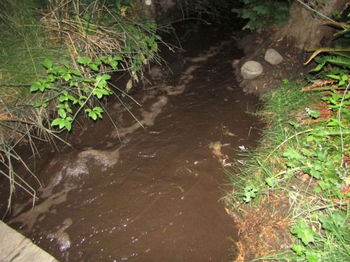 Here’s what it looked like this morning. and it still looks like that. The water level has dropped a little from the early hours but it is just as dark and thick.