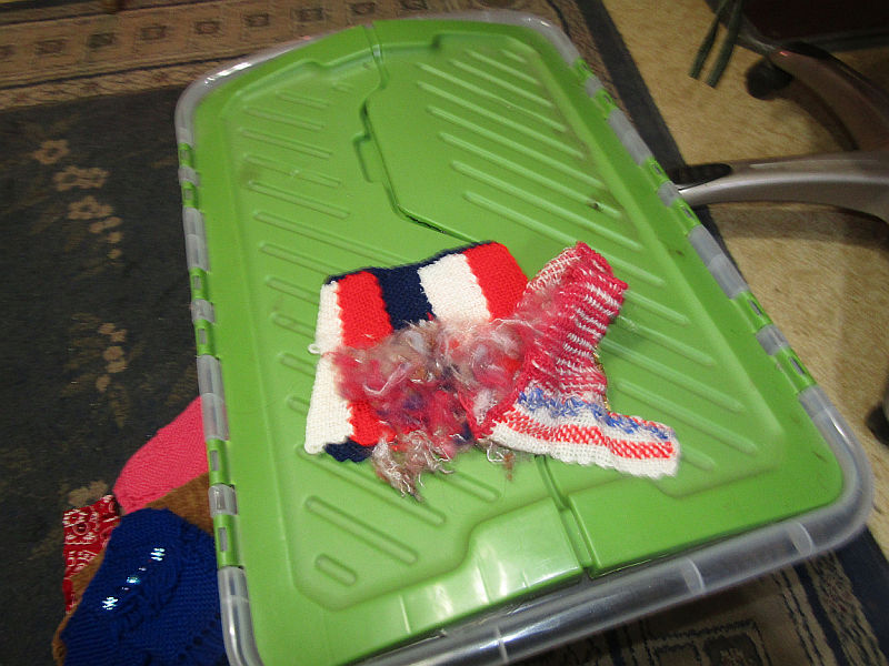 Found one of my bins of woven doll things out in Le Shed. I thought those bins were mouse proof. Live and learn.