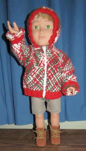 And a Hoodie for Dean. This one used the Quilt Weaver looms. I gave it those Kangaroo pockets and a zipper. I’m afraid this hoodie is probably more for warm than fashion. For that, I think it needs to be black and have a deeper hood, for hiding in. It has knitted cuffs and edgings. I should have shortened the sleeves as well.