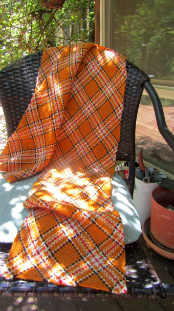 The people at Lambtown want me to advertise my class this October on my social media. Does a blog qualify for that? If so I hope you will think about joining us if you are within reach of Dixon, CA. They always have bus service from the bay area if you live down that way. We’re going to be weaving Tartans! The scarf is one of the simpler projects you can use your tartan designs for. Can you imagine weaving your own kilt?! Me neither! That’s something like 35 yards of fabric, but we’ll have useful and wearable projects you can weave. This class is mostly about how to take a floor loom woven pattern and translate it into a useable pin loom pattern. We’ll be using the Quilt Weaver Looms. mostly 12 inch and 14 inch squares, tho I will include the 10.5″ and even some that may work with the 7″ square. It’s going to be fun!