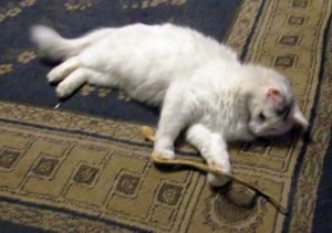 Katt is heck on rubber snakes even if he does sleep though mouse raids.