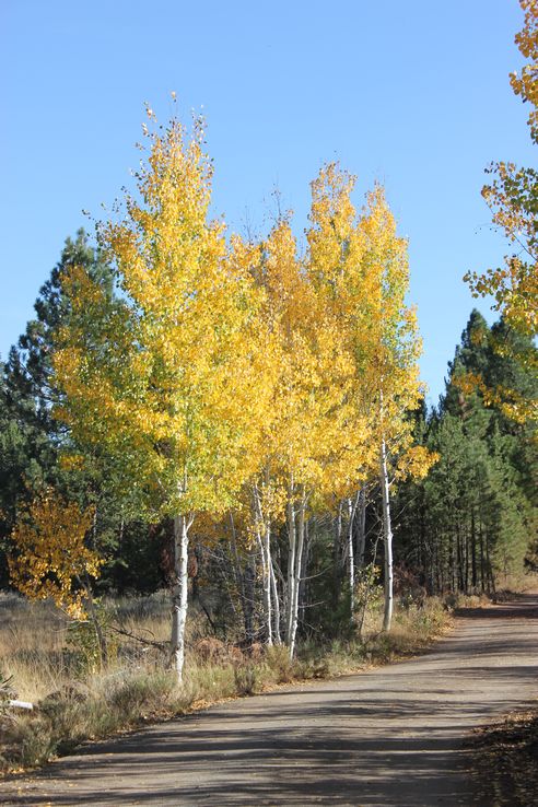 Quacking Aspens in full color and a nice breeze to set them shimmering. The Ponderosa forests are impressive, too. I didn’t get a really good pictures but here’s one. I love the red trunks.