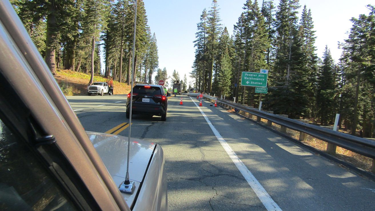 Standard for summer since it is difficult to do road work in the winter. Up there it would be impossible! The snow will hamper that just a bit! The small green sign says 7000′. They were putting in culverts.