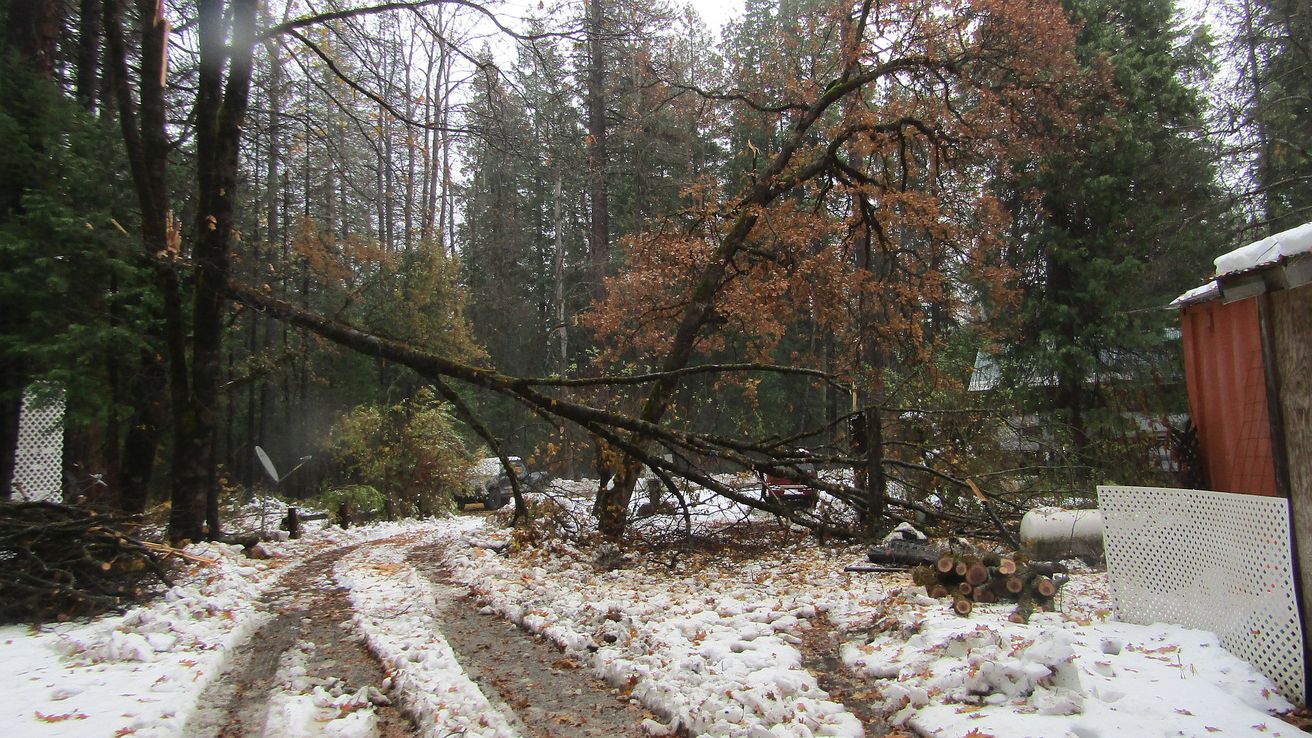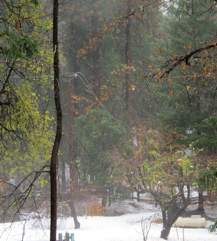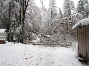 We rarely get snow before Thanksgiving but Mother Nature did it with a vengeance this year! We only got about 11″ but it was very heavy wet snow and the trees, especially the oaks, had not lost their leaves yet. Bad with any snow but fatal for too many of them this time. And, of course, they took out the power lines. It was cold and wet and dangerous out there but the guys at PUD worked through it all to get us back to our normal easy life of lights and dishwashers and all that other stuff that makes modern life more pleasant and I’m sure we all appreciate their hard work. Especially if you’ve seen some of the stuff they had to deal with! For instance…