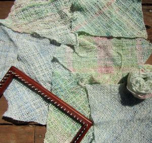 I’ve ben weavung 12″ squares using soome of Rosy’s hand spun. I think it was the last she spun and dyed. She started a scarf with it but told me she didn’t like it and would find smething else to make with it. She didn’t have time to do that so I thought I would do it for her. It’ll be a baby blanket, I think. I’ve been using differnt lace patterns. They’re pretty and more interesting to weave than just plain weave.