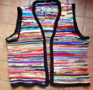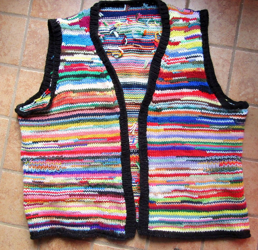 I’ve done little yarn things this winter, knitted myself a scrap vest. This is all the scraps and snippets saved from projects over the last decade, probably. Tied together in an overhand knot. Will that hold? Ask me in a few years of wearing it!