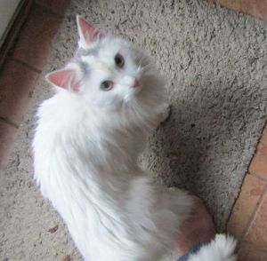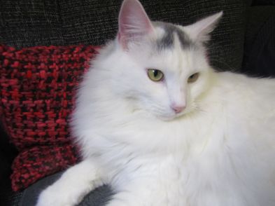I must have. I still haven’t been able to find his family or anyone who can give him a home.  He seems to be happy asking to be let out when he needs to answer nature. That’s fine as we really have no place to keep a littler box. We have been planning to take him to the shelter in Weaverville if I cannot find another home for him. At my age I really don’t need a cat under foot, and he is really good at the ankle twining cat thing! But it looks like we may end up keeping him after all. Randy talked to the temporary animal control person and was told that they are at capacity for cats and can’t take anymore. I’m not going to dump him or let him starve. He’s a very loving guy, also quite handsome and well mannered. He’s also a long haired white cat. So far in this cold weather, he has not been shedding but that’s one thing my last white cat did in abundance, I still find her “angora” on my black coat and stuff like that! But we’ll see.