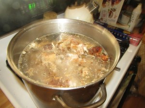 Yes, We are thankfully full of turkey, ours was on Saturday as the bird was still frozen on Thursday so we had ham then, which made Himself happy as he much prefers it. Costco has a good ham, too, so I enjoyed it as well. And I am thankful that there is ‘punkin’ pie left over. This one was made out of one of sis’s butternut squashes, yummy. But mostly I’m thank full that the job of cutting up the carcass is done and the meat in the freezer and the bones  in the soup pot! My favorite part of turkey is a big pot of soup! I’ll be canning some of that later this week. As mentioned he’s not a great fan of turkey or soup, both of which I love so I can it in pint jars and have lunches for half the winter! Well, maybe not half, but there is another turkey in the freezer!