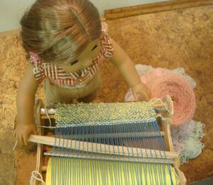 In the Peg Loom class we be making a headband, it’s a fairly fast project and also a useful product, practical me has to include that virtue. But the loom is good for much more. This is one I did this summer. I bought some cleaned skirtings from a shepherd at fiber Fusion NW this spring and wove this rug on my 22″ Peg loom. It is so lush! Soft and thick and, I think, nice looking. I am not sure how well it will wear but I joined an peg loom weaving group on face book and see that this is a very popular rug among those weavers so I’m thinking it must hold up pretty well or it seems there would be some mention of that. Anyway, here it is. I didn’t have all the weft tails cut when I took this, but you can see how cozy it looks. I can picture my always cold feet snugged up on that this winter!