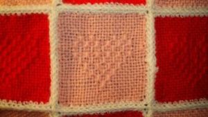 In the Peg Loom class we be making a headband, it’s a fairly fast project and also a useful product, practical me has to include that virtue. But the loom is good for much more. This is one I did this summer. I bought some cleaned skirtings from a shepherd at fiber Fusion NW this spring and wove this rug on my 22″ Peg loom. It is so lush! Soft and thick and, I think, nice looking. I am not sure how well it will wear but I joined an peg loom weaving group on face book and see that this is a very popular rug among those weavers so I’m thinking it must hold up pretty well or it seems there would be some mention of that. Anyway, here it is. I didn’t have all the weft tails cut when I took this, but you can see how cozy it looks. I can picture my always cold feet snugged up on that this winter!