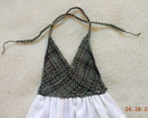 The Play suit, a version of a Weave-it  project was even smaller, measuring 26 at the waist and 36 at the hip. This way of doing it has no darts but is tiered as in chart. And you’ll see in the chart that the squares are Not square, This was to show that they are eased in to fit the previous row. It does not look gathered if done carefully.