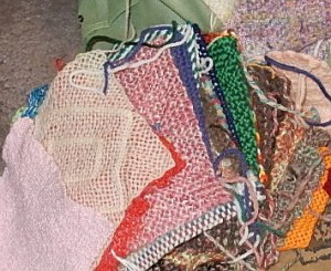 Sort of like my pictures! lol I can’t seem to get them to do what I want, either! But you can see what I mean. There’s a lot of weaving hours and a lot of yarn tied up here and it ought to be good for something. Any ideas?!