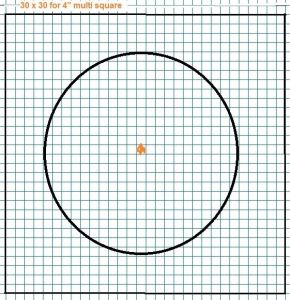 But I did this on the 4″ Multi loom. First you need a graft to fit your loom. I did this for you so you can just print these out and design away! The red dot is the center of the loom to help place your design so that it will fit. You want at least one stitch as a border, more is better, especially of you plan to attach these to other squares. I made a baby blanket using this and some cute little animal pictures. I also added the one with the centered circle in case you ae doing round ornament type projects.