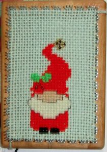 Here’s some I have done, I didn’t keep track of them all, tho, too bad. If you are unfamiliar with embroidery There are lots of instruction on line, I expect. Also Gabi had a WAL on the subject some time ago and she may still have links to that information. Here’s the one I made in that WAL & c couple Xmas squares. The gnome is  on the 4×6″.