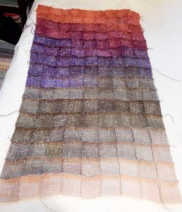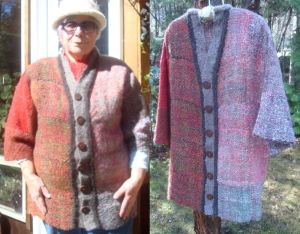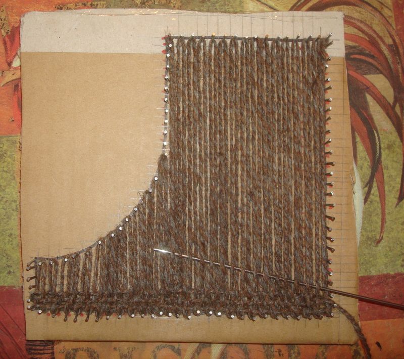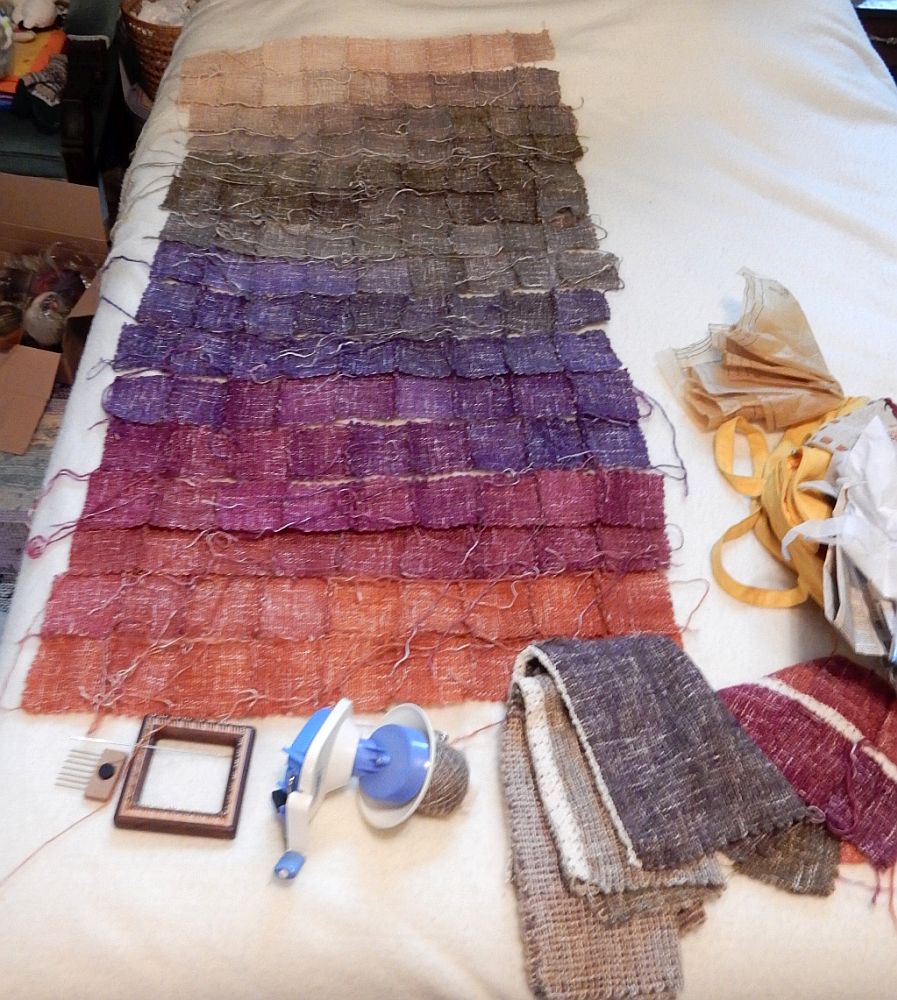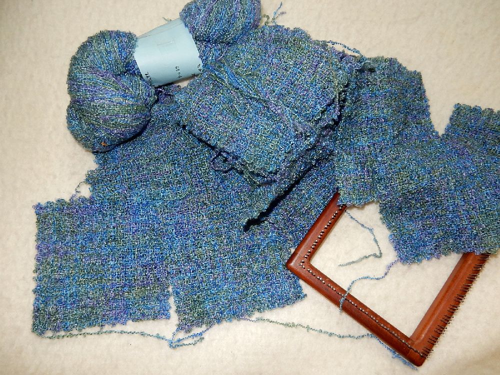 I did manage to get one project woven on our invented circle loom. That was not actually on the list, just one of those things we’ve discussed in the past and it came up again while shopping at the GoodWill in Redding the other day. We bought a 12″ knitting loom. A plastic ring with pegs all around. I thought I could use it for a peg loom, but there turned out to be a few things I did not think of in my enthusiasm for the idea. Like that the pegs were only about an inch tall and there was no hole for the warp strings. But Himself came to the rescue and made a set of drilled pegs with dowels. The problem with the large circle is that there are too many warp strings in the center of the bottom to make a flat bottom. I was using some elderly Caron 100% Dacron rug yarn with the original price of 79 cents. So the bundle of warp in the center was too big to bundle. I came up with a solution for that -after the fact- so it didn’t work very well here but I got a semi flat bottom to my bowl. I had planned it to be a basket but had to stop short this time. I’ll start from the bottom on the next one. I think it’ll work better. This one is only about 3″ deep. Himself thinks I could use this method to weave Rasta hats! I knitted one for my grandson years ago, like the 2nd one pictured. (That’s not mine, I can’t see to find a pic of it.) I guess it may be possible and I might try it later! The one with the braids definitely is a possible.
