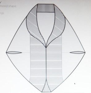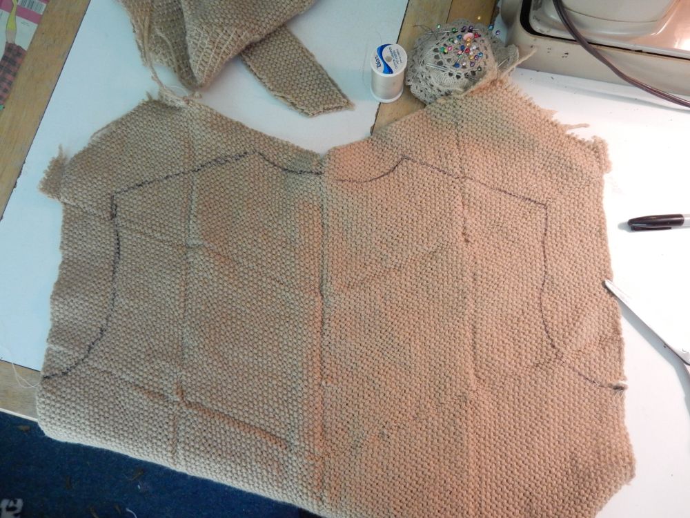 But here it is laid out flat. The neckline was a picot, bind off. The sleeves an applied I-Cord. The hem also Picot bind off. I picked up the stitches, knit around and then worked the BO.