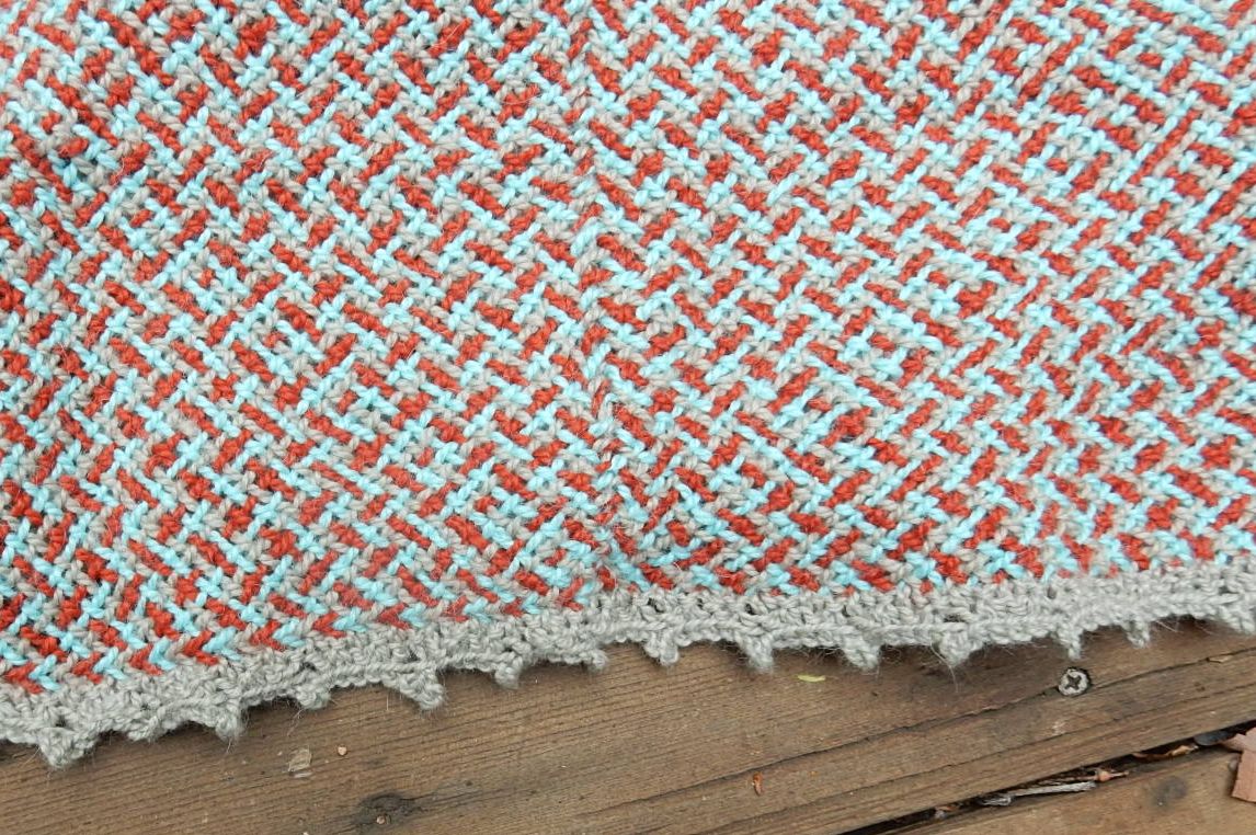 Picked up hem stitches then knit in the round one round and bound off with the picot stitch. I didn’t want this one to curl.