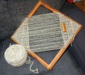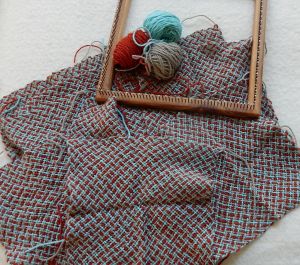 But there has been yarn happening. This spring there was a happy class of beginning weavers making dish cloths over in Farmington, Utah, and five weavers joined me at Lambtown in Dixon Ca in October to weave Tartans. That was interesting and fun as well. The skirt is a project of mine. Not entirely successful, still not finished, I just have to give a little more thought to it! The scarf is more successful and a lot easier project! The samples shown from the class are family tartans the weavers wanted to copy. It’s challenging to take a floor loom woven tartan pattern and translate it into diagonal continuous strand weaving, but these ladies were doing a good job of it. I’ve recently heard from one who is still working on her project. I hope they all are!