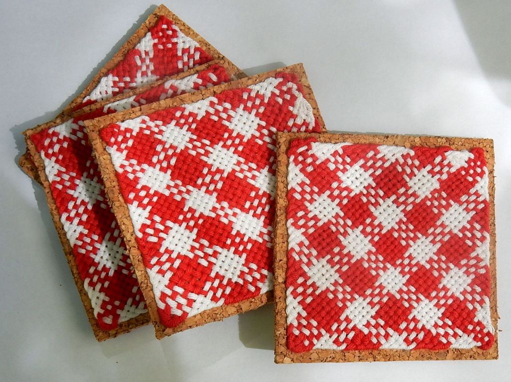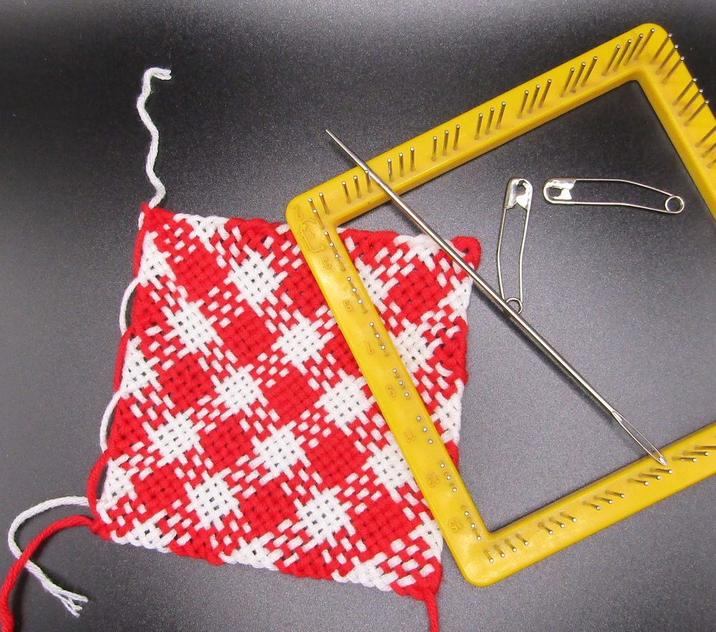 Weaving the checkered Mug Rug.